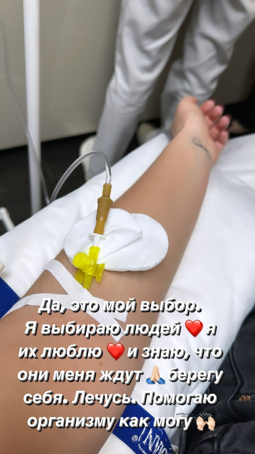 Певица поделилась с пользователями домашними кадрами с катетером на руке и подчеркнула, что не может себе позволить долго болеть.