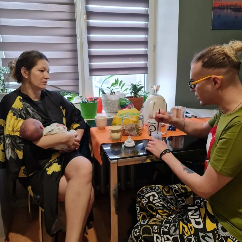 Оказывается, мамой младенца является бывшая жена Гогена, Полина, дочь Екатерины Терешкович. На фото она держит малыша на руках, а Гоген готовит смесь.