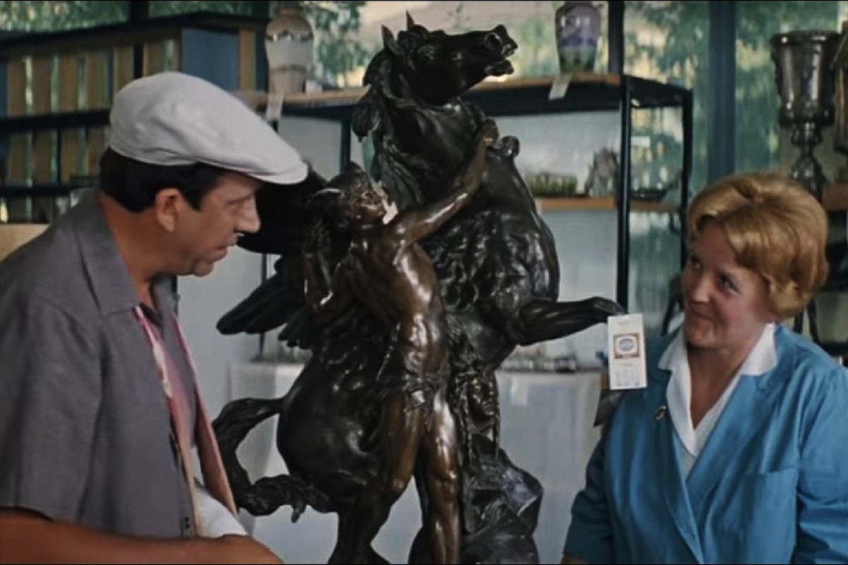 В кадре появляется одна и та же бронзовая статуэтка лошади, добавляя загадочности и колорита этим фильмам. В «Бриллиантовой руке», к примеру, на монумент обращает внимание герой Юрия Никулина Семен Горбунков, в то же время как в «Служебный роман» тяжелую лошадь приходится тащить Анатолию Новосельцеву. Этот интересный факт привлекает внимание зрителей и добавляет особый шарм киноклассикам.