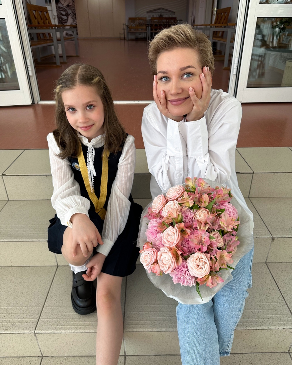 Также звезда поделилась фотографиями с дочерью, сообщив, что та закончила четвертый класс и в шутку описала себя как «рослого пацана» в короткой стрижке, рубашке, галстуке, который появился на школьной церемонии.