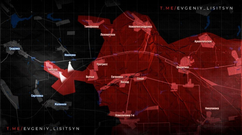 С продвижением ВС РФ юго-западнее Артёмово возрос риск для подразделений ВСУ быть окружёнными на участке восточнее Нью-Йорка.