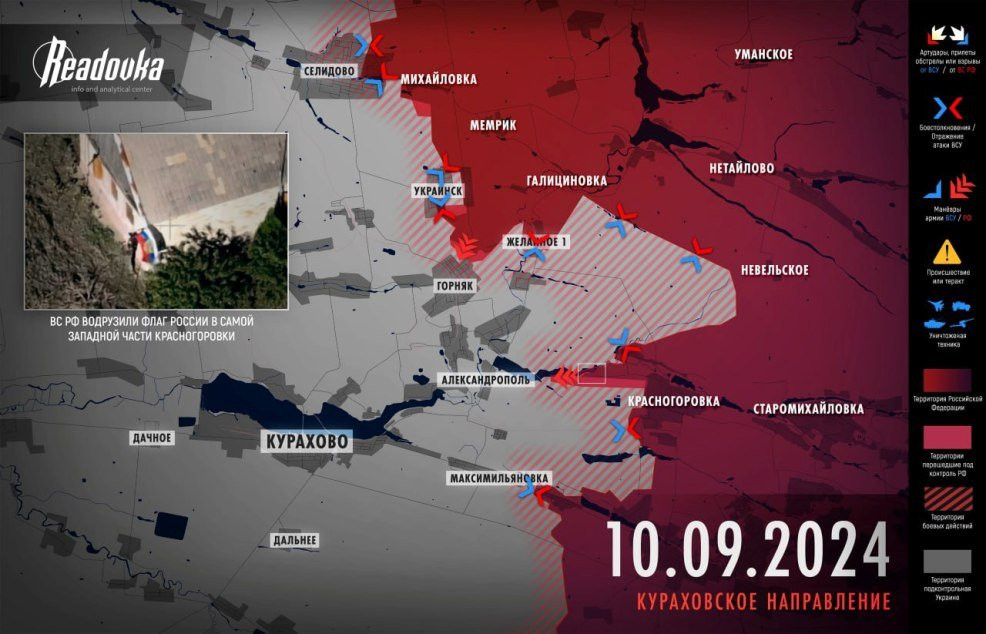 С Донецкого фронта пришла долгожданная новость: официально освобождена Красногоровка. Бои здесь длились практически полгода. Также ВС РФ полностью выбили врага из Водяного, взяли под контроль шахту «Южнодонбасская №1» и и террикон. Бои сместились к шахте «Южнодонбасская №3». В районе Павловки ВС РФ форсировали реку Кашлагач и закрепились на небольшом плацдарме. Это третий плацдарм на северном берегу Кашлагача, еще два – в Пречистовке и Золотой Ниве. Каждый из них позволяет двигаться к трассе Великая Новоселка-Курахово, чтобы перерезать ее и завершить охват Угледара.