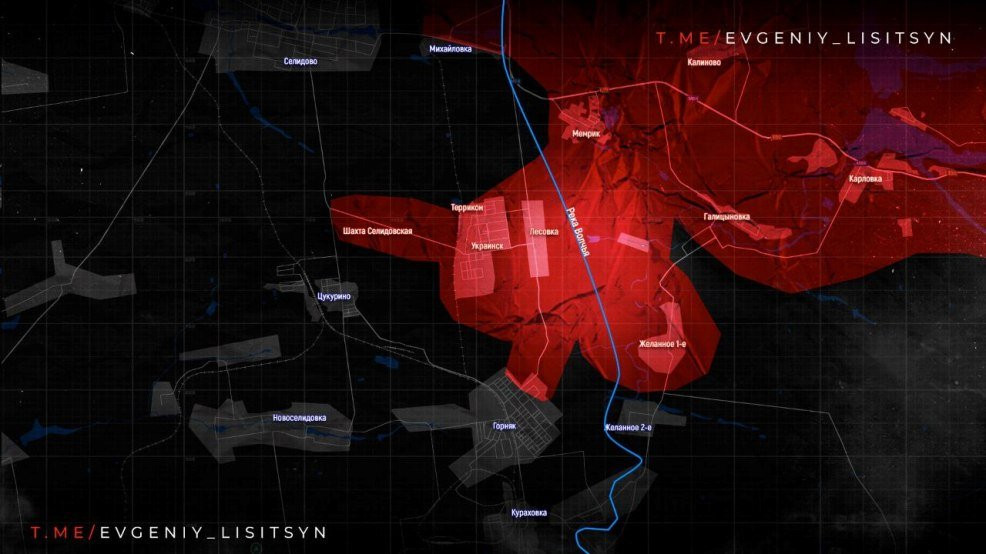 На Покровском направлении российская армия продвигается западнее от освобожденного Украинска. Наши парни взяли под контроль территорию шахты Селидовская и физически перерезали трассу из Селидово на Цукурино. Также идут тяжелые бои в Горняке, армия России продавливает сопротивление ВСУ и продвигается в северо-восточной части.