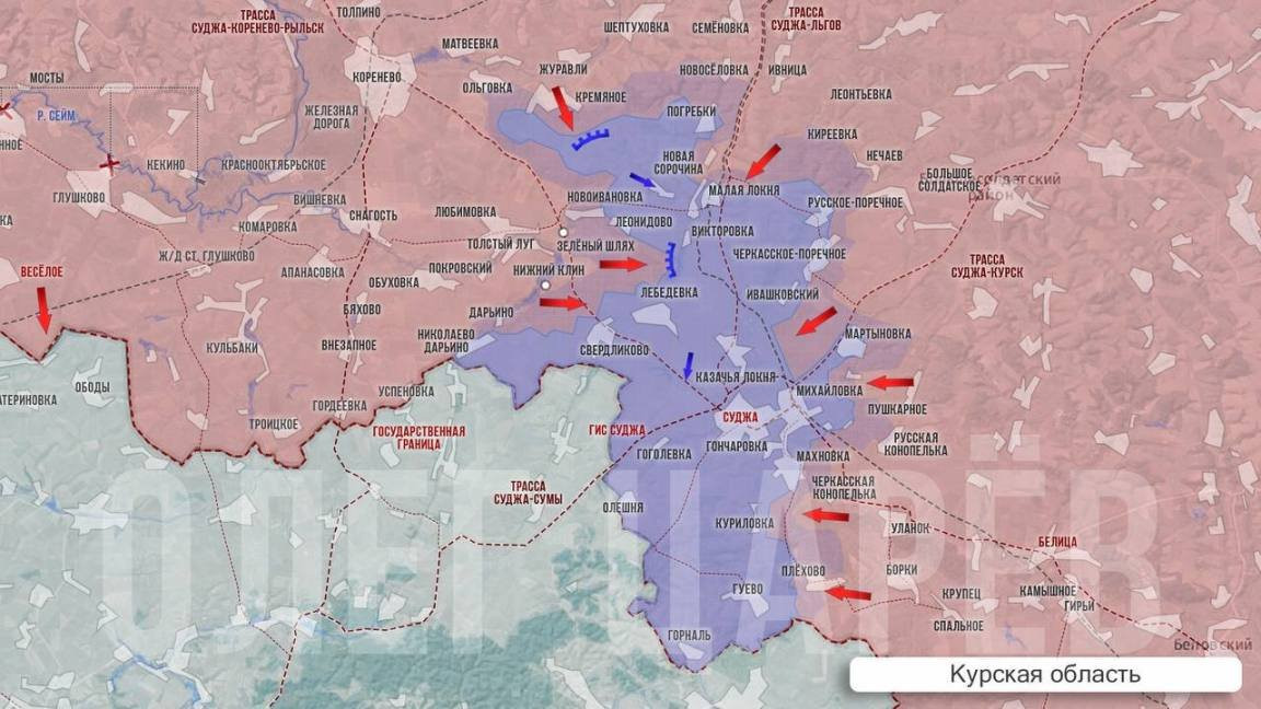 Олег Царёв в своём Telegram-канале отмечает, что положение сторон в Курской области существенно не изменилось. Тяжелые бои идут в тех же точках, что и накануне: наши военные стараются продвинуться в районе Дарьино и Погребков, а также у Малой Локни.