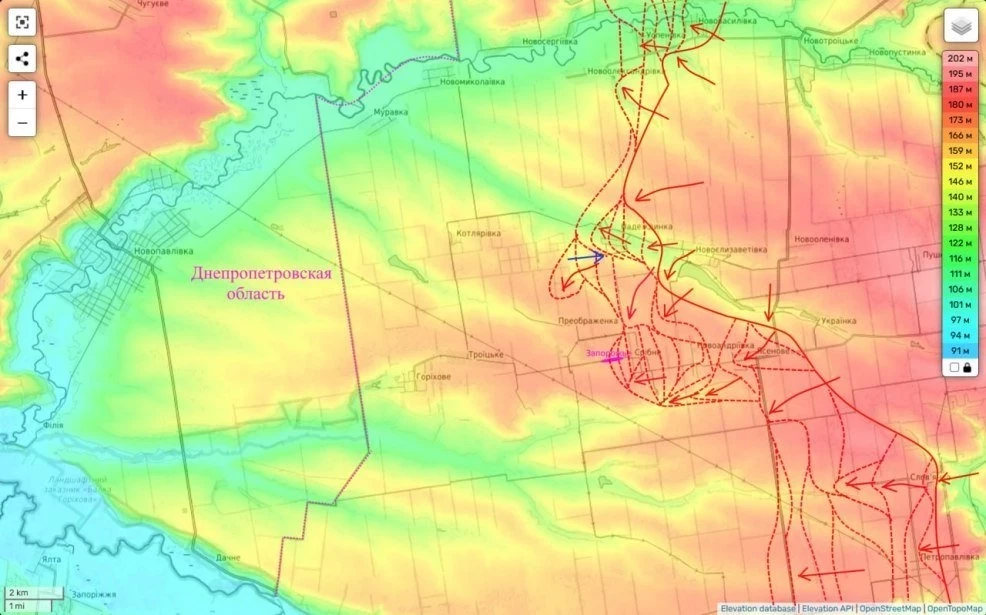 Наше командование очевидно вбивает клин в оборону противника, двигаясь к границе Днепропетровской области, где далее может наступать, как в тыл южной части Новопавловского фронта противника, так и на саму Новопавловку.