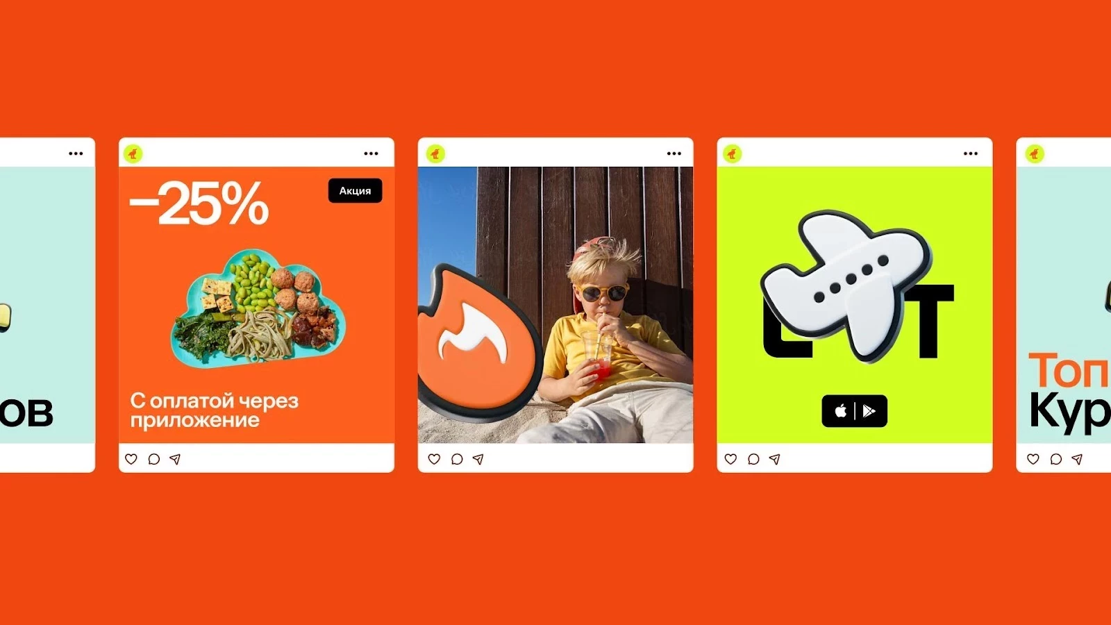• Новая айдентика и простая коммуникация. Символом бренда стала чайка — воплощение свободы, путешествий и поиска лучших предложений. Яркие цвета и динамичные элементы делают коммуникацию с клиентами еще понятнее и доступнее. В общении, как и в стратегии бренда, выделяется принцип: «главное видно сразу». В тексте стало еще меньше воды и еще больше пользы, качественной информации и способов отправиться на отдых.
