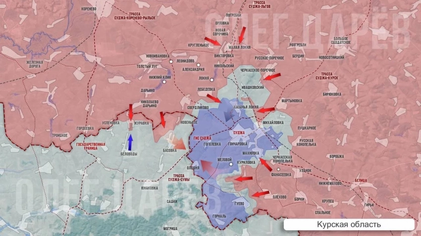 Также с мест сообщают о том, что взят под контроль посёлок Локня южнее, наши части зашли в Богдановку рядом с Казачьей Локней. ВСУ массово отходят и даже бегут с территории севернее Малой Локни и вплоть до Казачьей Локни, куда стекаются остатки северного гарнизона ВСУ, однако сейчас этот село отрезано от Суджи подорванными мостами через реку Локня, так что долго удерживать его будет для ВСУ проблематично, информирует Олег Царёв в своём Telegram-канале.