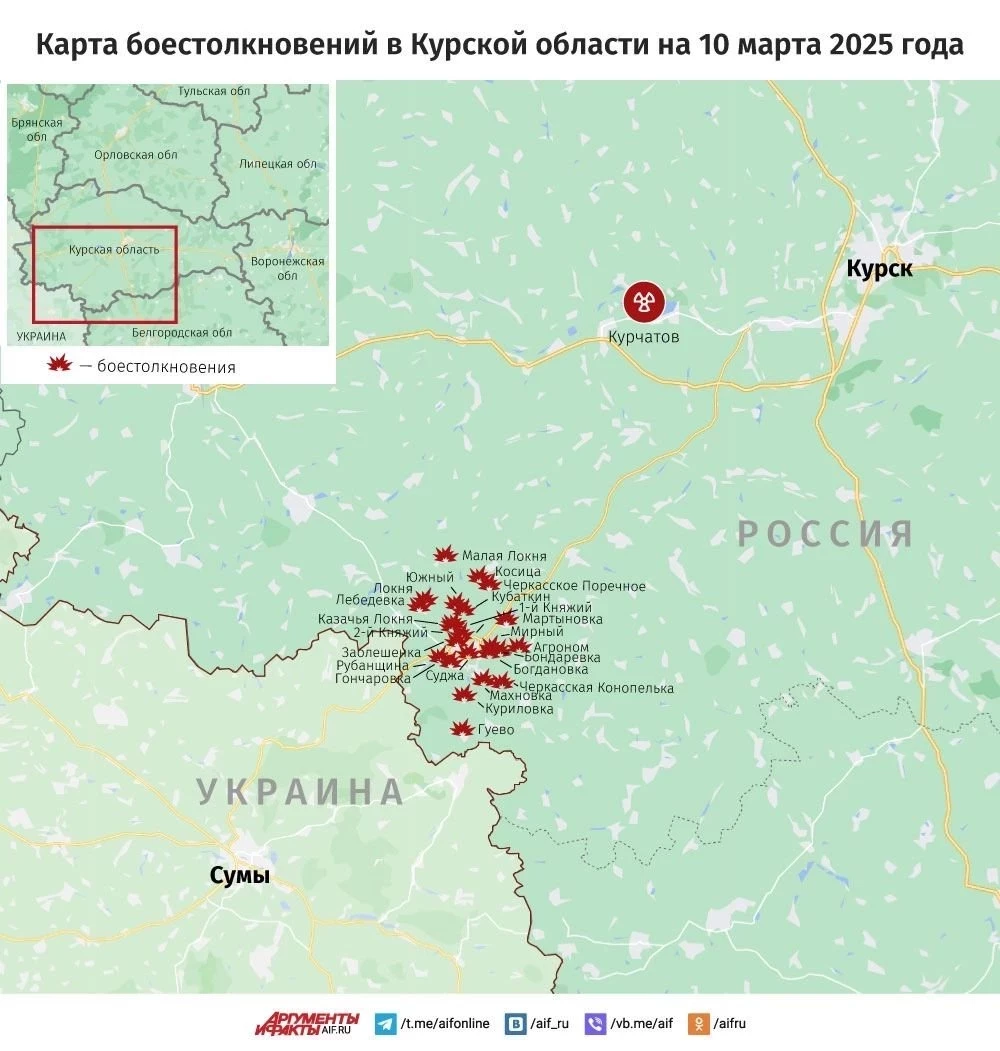 Свежая карта боевых действий в Курской области. Данные на сегодняшний день, 10.03.2025