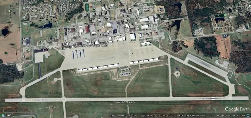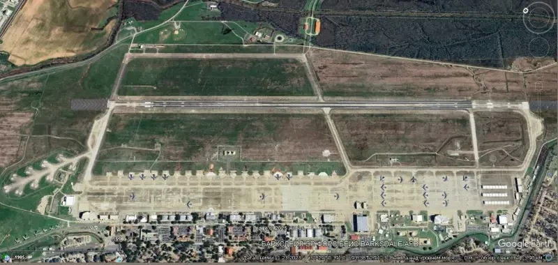 Спутниковый снимок Gооglе Еarth: взлётно-посадочные полосы и авиационные стоянки авиабазы Барксдейл