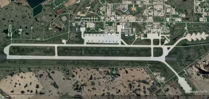 Спутниковый снимок Gооglе Еarth: взлётно-посадочные полосы и авиационные стоянки авиабазы Минот