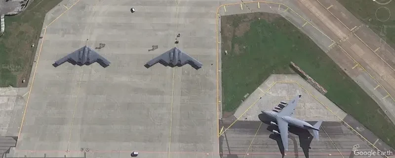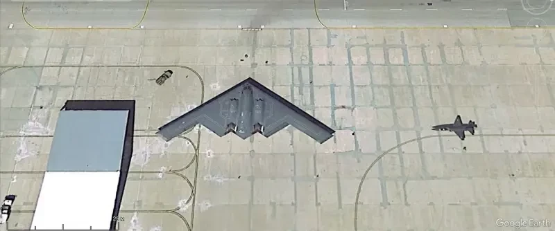 В отличие от других самолётов ВВС США, малозаметные бомбардировщики В-2А проводят большую часть времени внутри крупногабаритных ангаров, и увидеть на спутниковых снимках их можно не так часто.