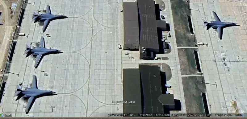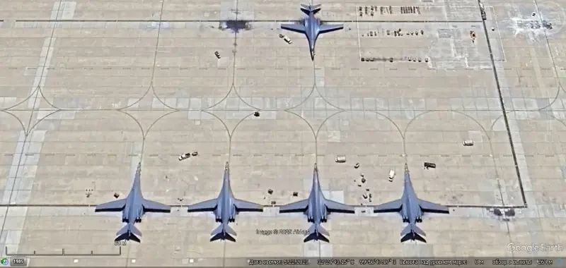 Спутниковый снимок Gооglе Еarth: бомбардировщики В-1В на авиабазе Даейсс