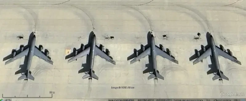 Спутниковый снимок Gооglе Еarth: самолёты-заправщики KC-135R на авиабазе Эль-Удейд в Катаре