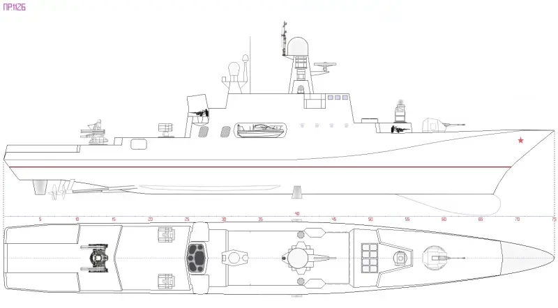 Цитата из Википедии про корвет пр. 20380, но лучше и не скажешь, и нечего добавить применительно к проекту 1126. Разве что обратить внимание на необходимость выполнить выхлопные короба ходовых турбин из титана, а по большому счёту чем хуже дизеля? Вот таким можете себе представить в общих чертах корпус будущей рабочей лошадки Российского ВМФ.