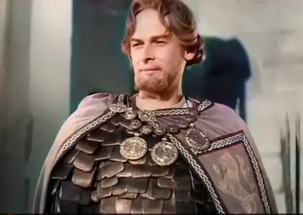 А это князь из фильма… В роли Александра Невского снимался Н. К. Черкасов. Интересно, что в похожих доспехах князя Александра изобразил и Николай Рерих