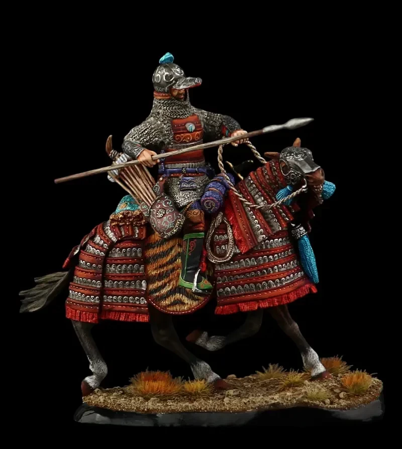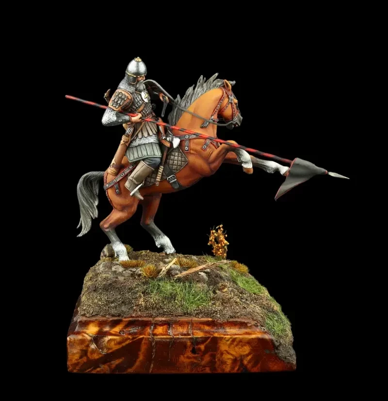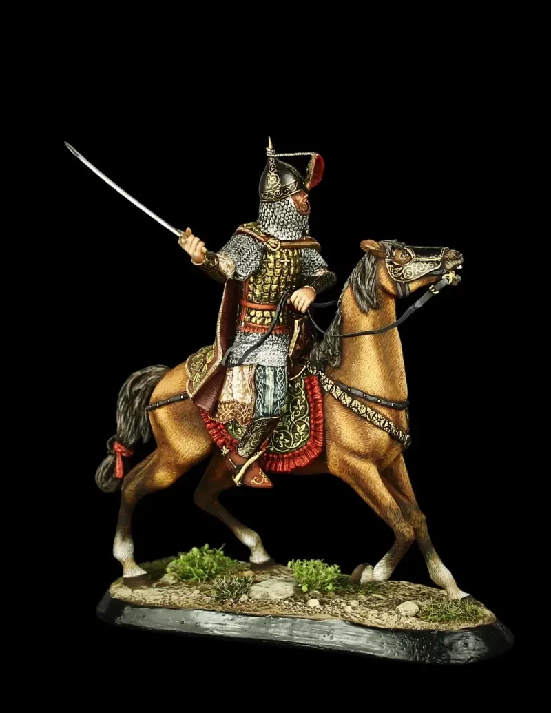 Русский конный воин из дружины князя Дмитрия Донского. Доспехи из кованых пластин, и такие же наплечники – всё это стало неотъемлемой частью защитного вооружения русских воинов, сражавшихся на Куликовом поле. Производители: «Silver Dream Studio» и «Mercury Models»