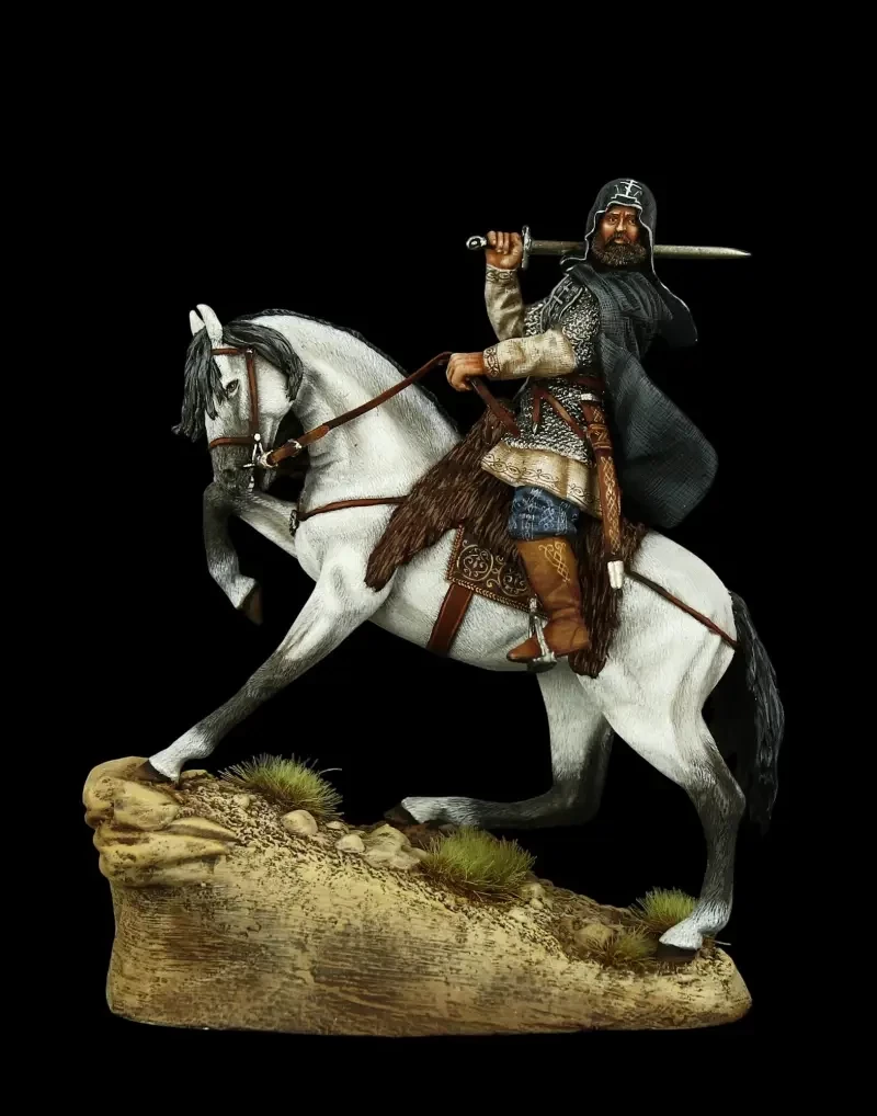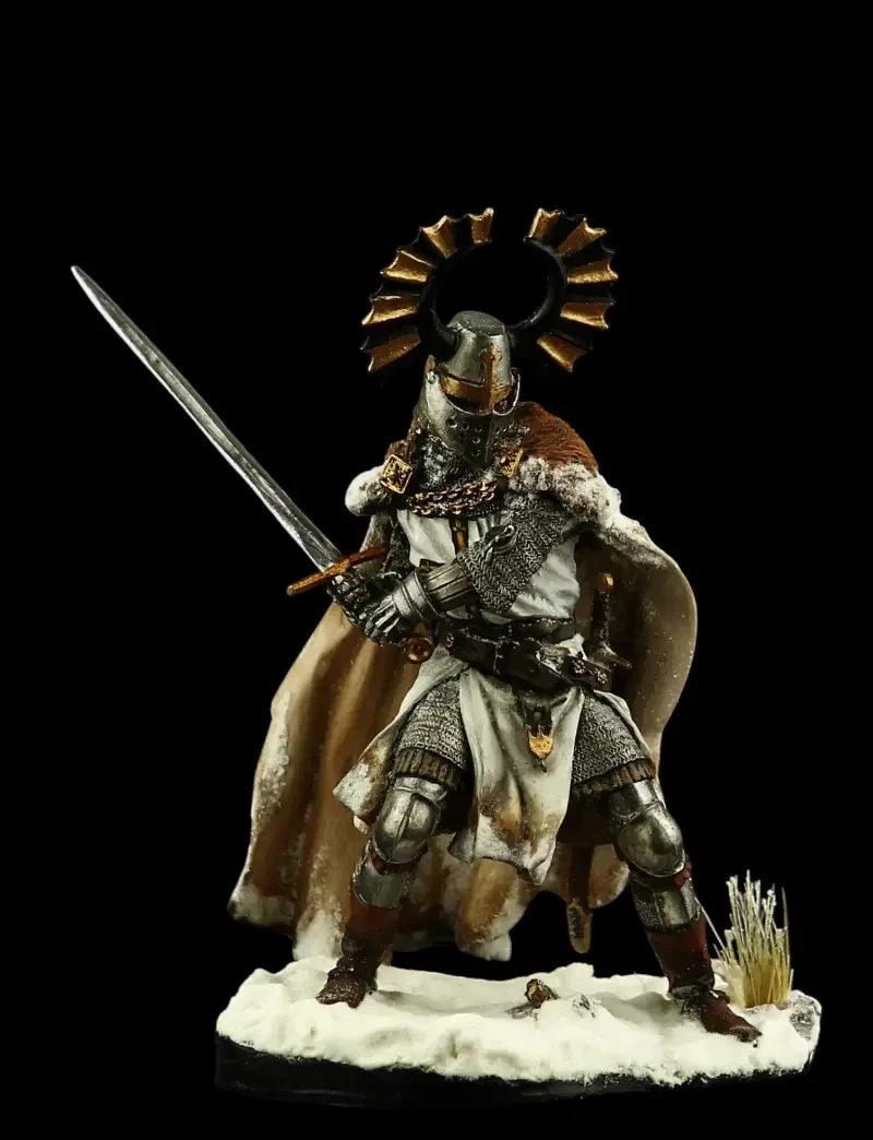 Ещё один рыцарь крестоносцев в битве при Грюнвальде. Поверх кольчуги в это время уже стали носить накладные металлические пластины, а сам шлем получил открывающееся забрало! Интересно, что Генрик Сенкевич в своём романе «Крестоносцы» писал о том, что тевтонские рыцари имели обыкновение украшать свои шлемы павлиньими перьями! Производители: «Silver Dream Studio» и «Pegaso Models», Италия