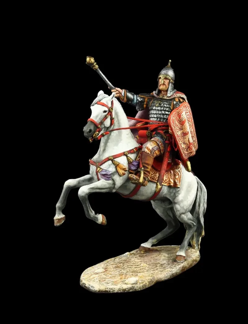 Князь Александр Невский, прославившийся своими победами над шведами на реке Неве (1240) и тевтонскими рыцарями на Чудском озере. Изображён таким, каким советским кинозрителям его показали в эпической киноленте «Александр Невский» С. Н. Эйзенштейна 1938 года. Но шлем у фигурки другой, не такой, как в кино, а более соответствующий тому времени. Производители: «Silver Dream Studio» и «EK Castings»