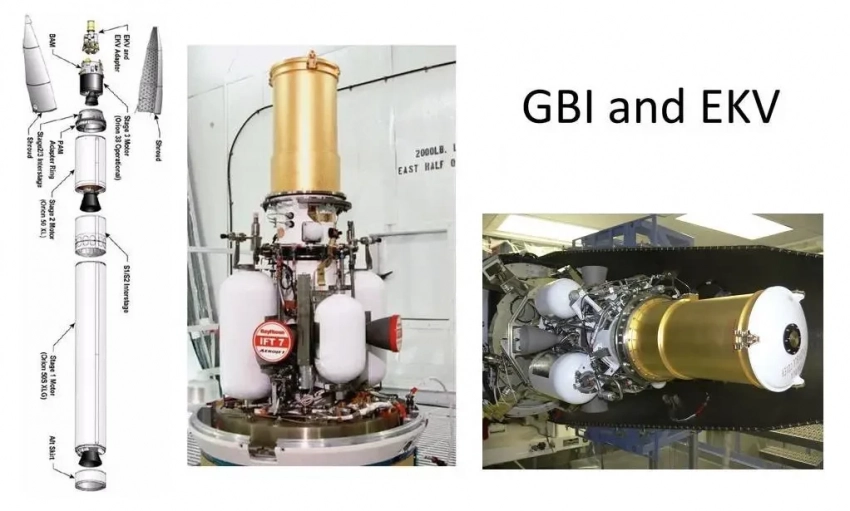 Боевой аппарат именуется EKV — «внеатмосферный поражающий блок», запускается трехступенчатой ракетой типа МБР, предназначен для того, чтобы сбивать боеголовки на среднем участке траектории, до момента разделения головной части. Вес EKV – 64 кг, и разогнанный до скорости 10 км/с, блок способен физически разрушить любую боеголовку. Естественно, EKV имеет собственную систему наведения и приемный блоки для получения информации с земных радаров.