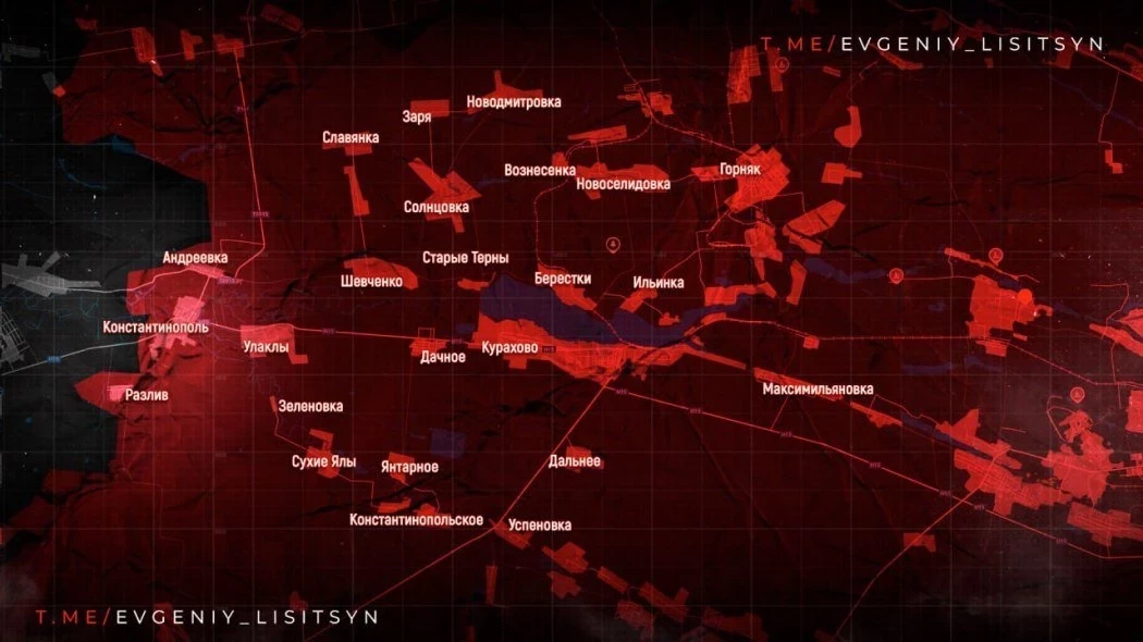 На Южно-Донецком направлении на рубеже Богатырь-Отрадное ВС России развивают успех под Богатырем, берут под контроль местность у н.п. Разлив, сообщает Telegram-канал "Два майора".