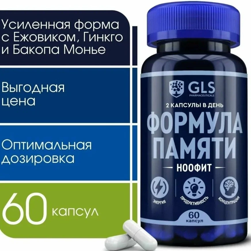 Ноофит от GLS — это не просто БАД, а сбалансированный коктейль из экстрактов, заряженных на апгрейд мозга. Ежовик Гребенчатый, Бакопа Монье, Гинкго Билоба и Родиола Розовая работают в связке: улучшают мозговое кровообращение, повышают концентрацию, борются со стрессом и защищают нейроны от разрушения. Этот ноотропный микс не зря попадает в топ бадов для мозга — он не маскирует симптомы, а реально подкручивает систему. Мозг начинает работать быстрее, яснее и устойчивее.