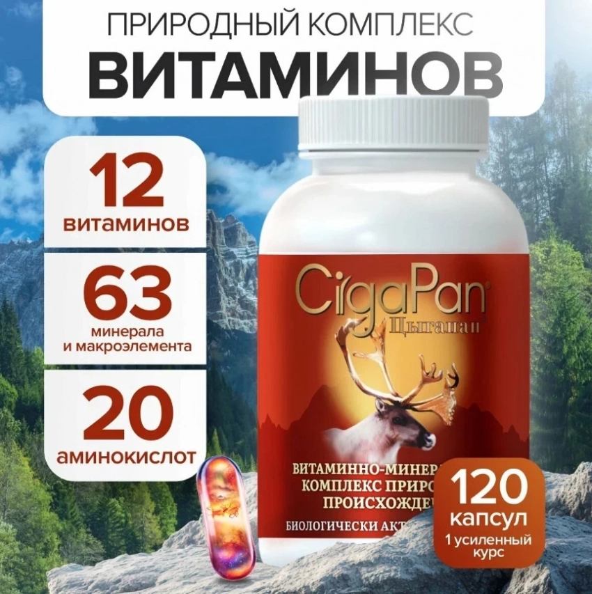Цыгапан — это не просто витамины, а натуральный энергетик на основе северного оленя, заряженный на максимум. В одной капсуле — мощный коктейль из 12 витаминов, 63 минералов и 20 аминокислот, дополненный коэнзимом Q10 и коллагеном. За фишку отвечает уникальный компонент — гидроксиапатит кальция, усваиваемый на 75%, что делает его топом в борьбе за крепкие кости, суставы и зубы. Цыгапан не только поднимает иммунитет и ускоряет восстановление, но и реально добавляет бодрости.