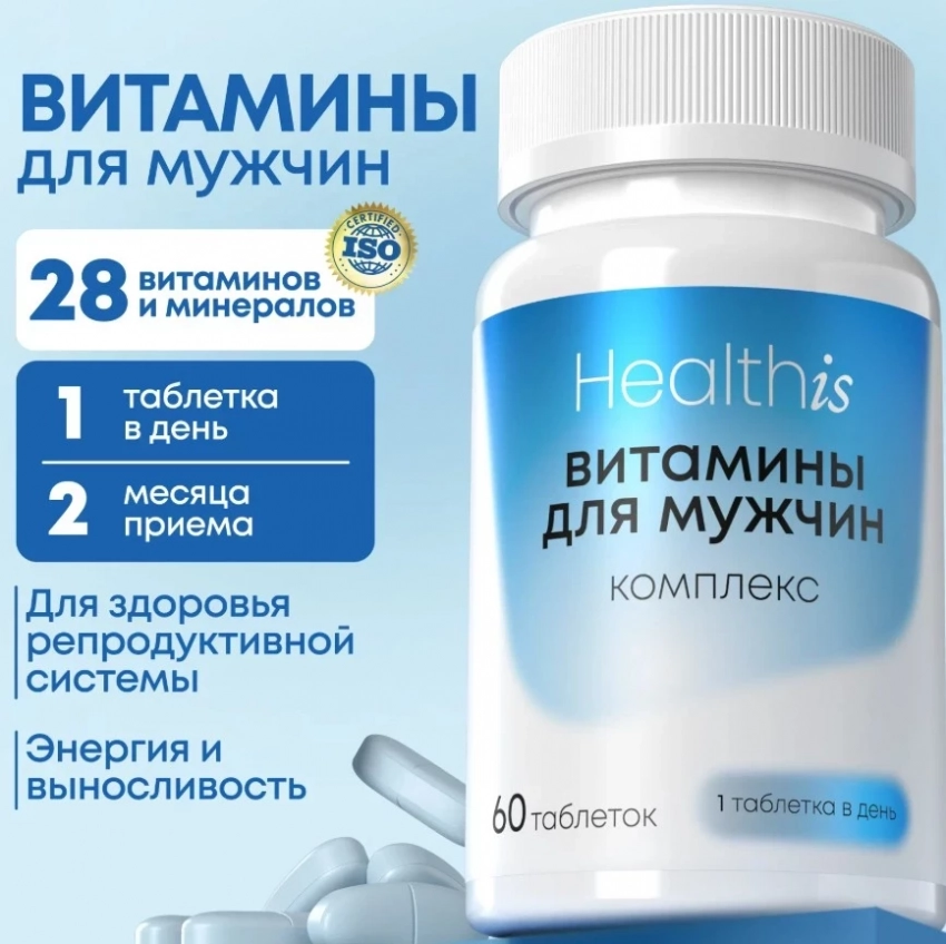 Витаминно-минеральный комплекс Healthis для мужчин — это не просто баночка с таблетками, а настоящий энергетический щит на каждый день. B-комплекс бодрит нервную систему, магний успокаивает и помогает спать, цинк стабилизирует гормоны, а витамин D3 с кальцием — бережёт кости и поддерживает тестостерон. Добавим сюда антиоксиданты и защиту простаты — и получаем одного из реальных претендентов в топ БАДов для мозга и тела. Прост в приеме, но сил даёт как солидный предтрен.