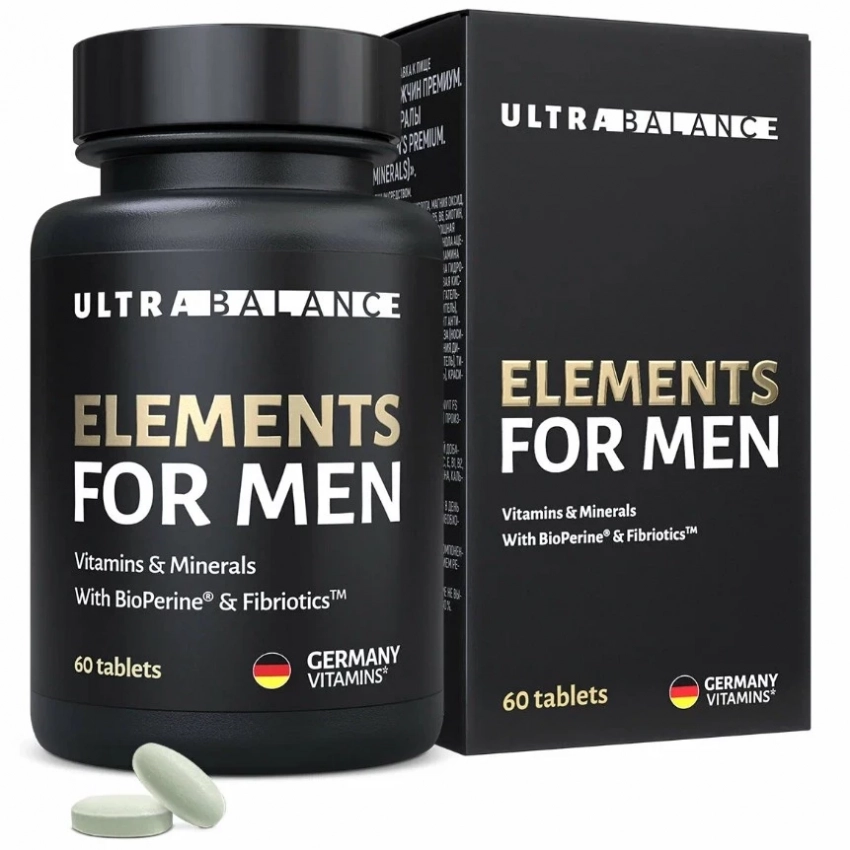 Elements for Men Premium от UltraBalance — это не просто витамины, это оружие массового восстановления мужского организма. Ферментированная смесь из 36 фруктов и овощей с пребиотиком Fibriotics прокачивает пищеварение и иммунитет, а BioPerine усиливает всасывание всех полезных веществ, превращая приём комплекса в настоящую метаболическую перезагрузку. Мощный состав поддерживает память, либидо и энергию, что делает его уверенным кандидатом в топ БАДов для мозга и тела.