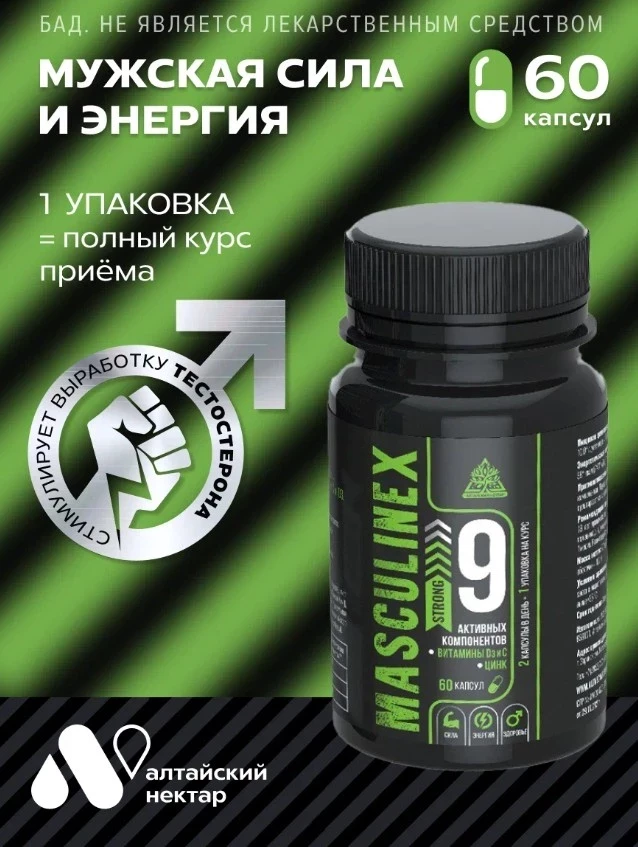 Маскулинекс Стронг — это не просто витамины, а настоящий биохак для мужского организма. Его формула из 9 активных компонентов работает как тандем тренера и врача: увеличивает выработку тестостерона, помогает нарастить мышечную массу, поддерживает либидо и борется с усталостью. В составе — и проверенные временем цинк с витамином D3, и мощные природные афродизиаки вроде йохимбе и маральих пантов. Маскулинекс по праву можно включить в топ БАДов для мужчин, стремящихся к выносливости и уверенному тонусу.