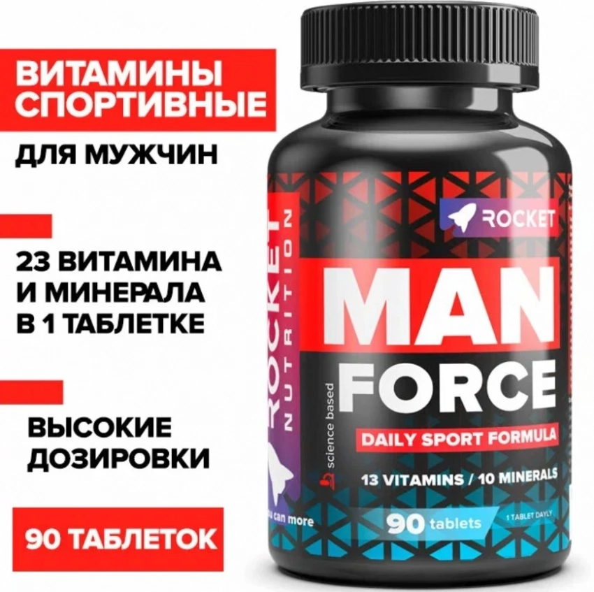 MAN Force от Rocket Nutrition — это полноценная витаминная база из категории топ БАДов для спортсменов, которая работает на всех фронтах: от выносливости и силы до гормонального фона и устойчивости к стрессу. В одной порции — 28 ключевых витаминов и минералов, подобранных с учетом мужской физиологии и активного образа жизни. MAN Force незаменим в период высоких нагрузок, помогает быстрее адаптироваться, сохранять концентрацию, усиливать либидо и улучшать общее самочувствие. Отличный выбор для тех, кто хочет держать организм в тонусе.