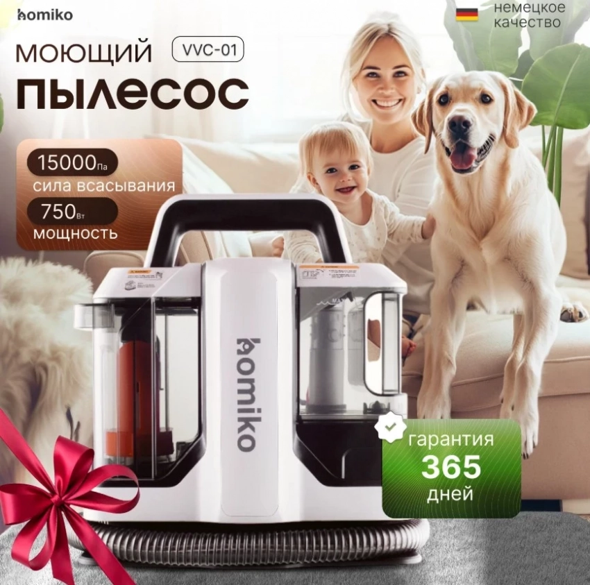 Моющий пылесос Homiko — это компактный, но мощный помощник, способный заменить вызов клининговой бригады. Он справляется с шерстью, пылевыми клещами и стойкими пятнами, обеспечивая глубокую чистку мебели и автосалона до 8 см вглубь. В арсенале — три насадки, функция сбора жидкостей, удобные баки для воды и шнур 5,5 м. Такой пылесос станет отличным решением для ежедневной уборки и достойным участником в списке лучших моющих пылесосов для мебели по соотношению «цена–результат».