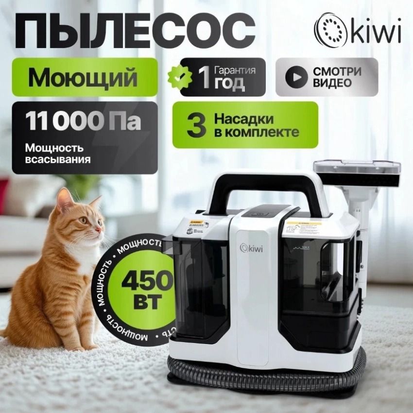 Пылесос KIWI & Aprilla — это удачный пример техники, в которой сочетаются простота, функциональность и разумная мощность. Он легко справляется с влажной уборкой мягкой мебели, ковров и салона автомобиля, при этом не требует сложного управления — механика здесь интуитивна. Три насадки в комплекте позволяют адаптироваться к разным задачам, а аквафильтр эффективно собирает влагу и грязь. Если вы не знаете, как выбрать моющий пылесос для химчистки мебели, — начните с этого компактного, но уверенного в себе варианта.