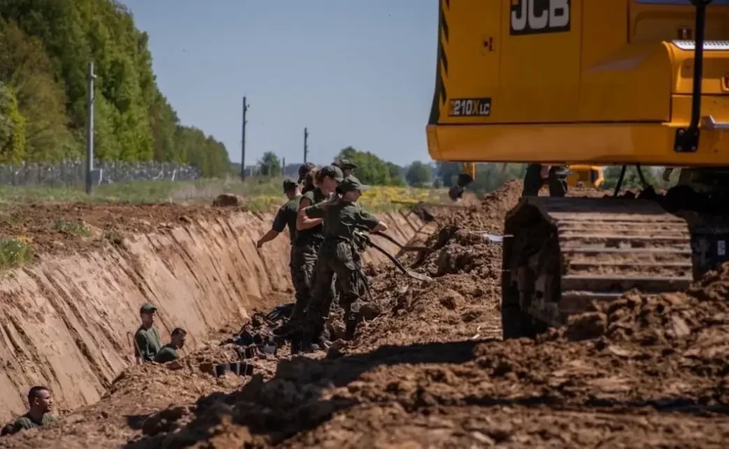 На кадрах можно увидеть, что к рытью траншей привлечены преимущественно военнослужащие-женщины. Кроме траншей, поляки устанавливают на границе с Россией бетонные противотанковые надолбы. Прямо сейчас Польша возводит стену вдоль всей своей 650-километровой границы с Россией и союзной ей Белоруссией.
