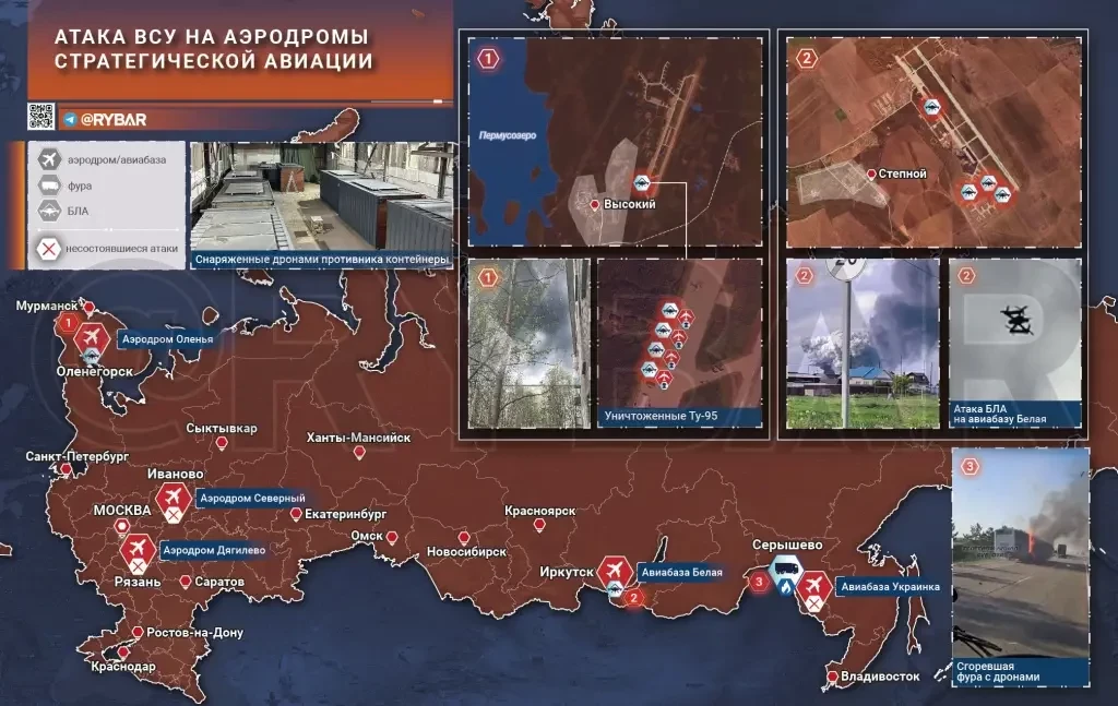 «Ключевые моменты — недавний удар беспилотников Украины в рамках операции „Паутина“, в результате которого, как сообщается, было уничтожено или повреждено несколько российских стратегических бомбардировщиков Ту-95 „Медведь“ в глубине территории России, представляет собой значительную и потенциально невосполнимую потерю для дальней авиации Москвы»