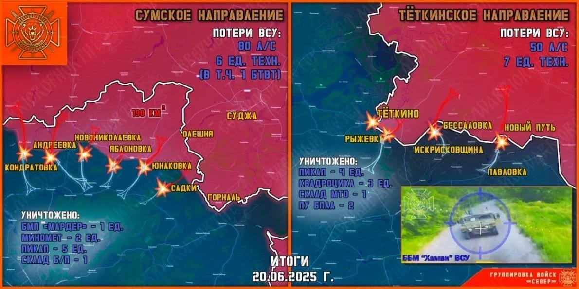ВСУ за сутки шесть раз пытались прорваться в Тёткино и Новый Путь: свежие данные из Курской области на сегодня, 21.06.2025