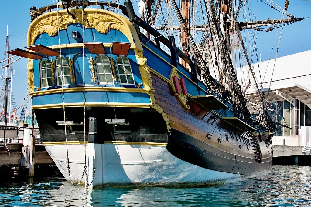 Огромное внимание было уделено отделке внутренних помещений, при этом стремились придерживаться оригинала. Для этого кузнецам пришлось выковать более 30 подвесных светильников, а резцам по дереву изготовить необходимые резные панели. Мебель и все текстильные изделия были изготовлены вручную в стиле 18-го столетия. На палубе установили копии оригинальных пушек, которые в нужные моменты могли даже производить холостые выстрелы.