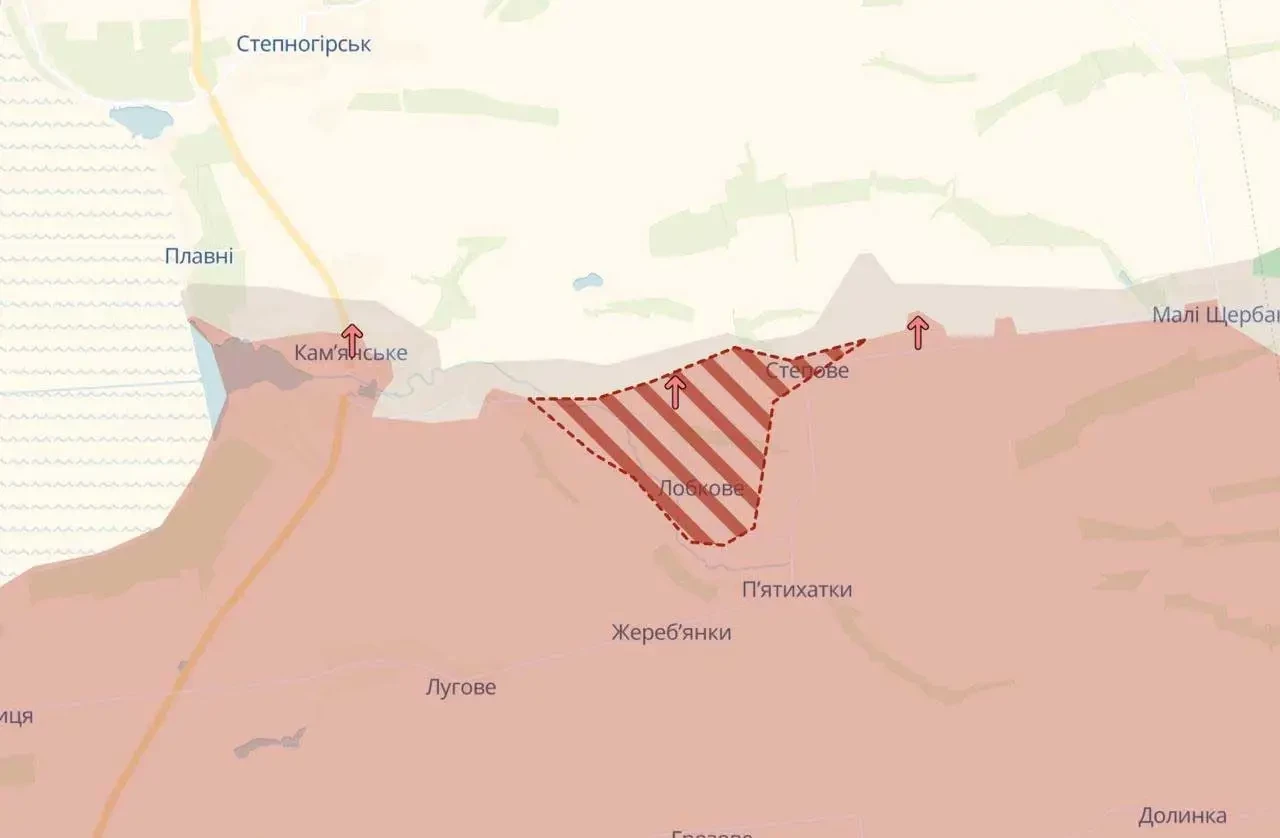 Крася карты красным цветом, украинский ресурс DS пишет о потере этих населённых пунктов, добавляя, что ВС РФ продвигаются севернее – в том числе к селу Плавни. Часть этого села – уже в «серой зоне». Участок железной дороги между 1138 и 1141 км в районе Каменского и Плавней тоже перешёл под контроль армии России.