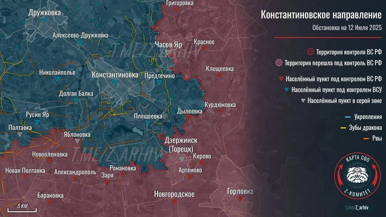 Он также отметил важность контролирования сел Карла Маркса и Николаевка в пределах ДНР. По словам Дандыкина, каждый населенный пункт имеет большое значение, и сейчас российская армия формирует окружение вокруг Константиновки, все быстрее продвигаясь в этом направлении.