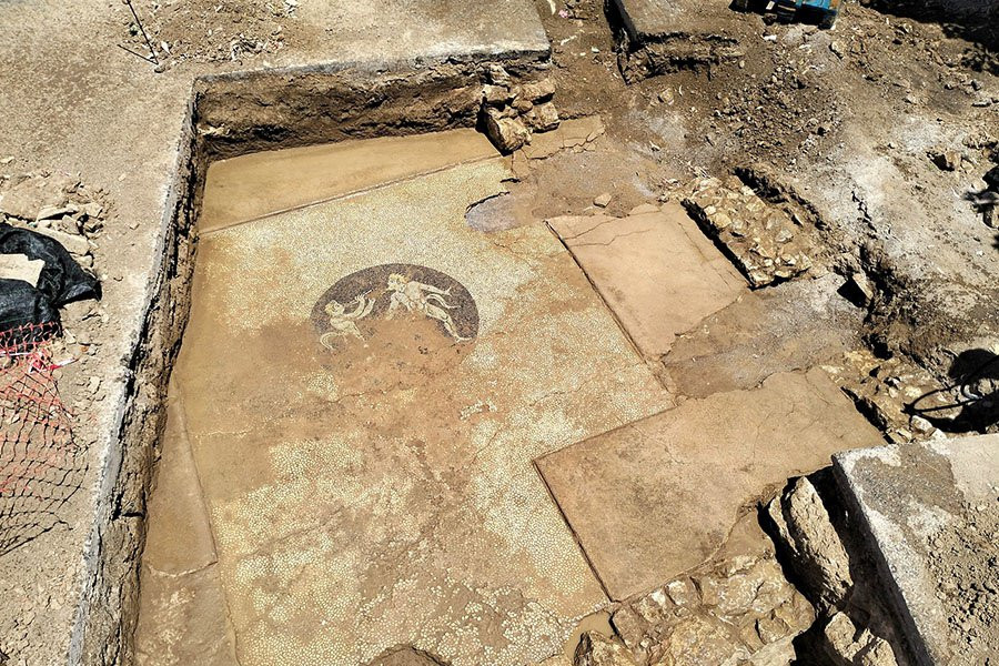 В Греции найден мозаичный пол из гальки с изображениями сатиров