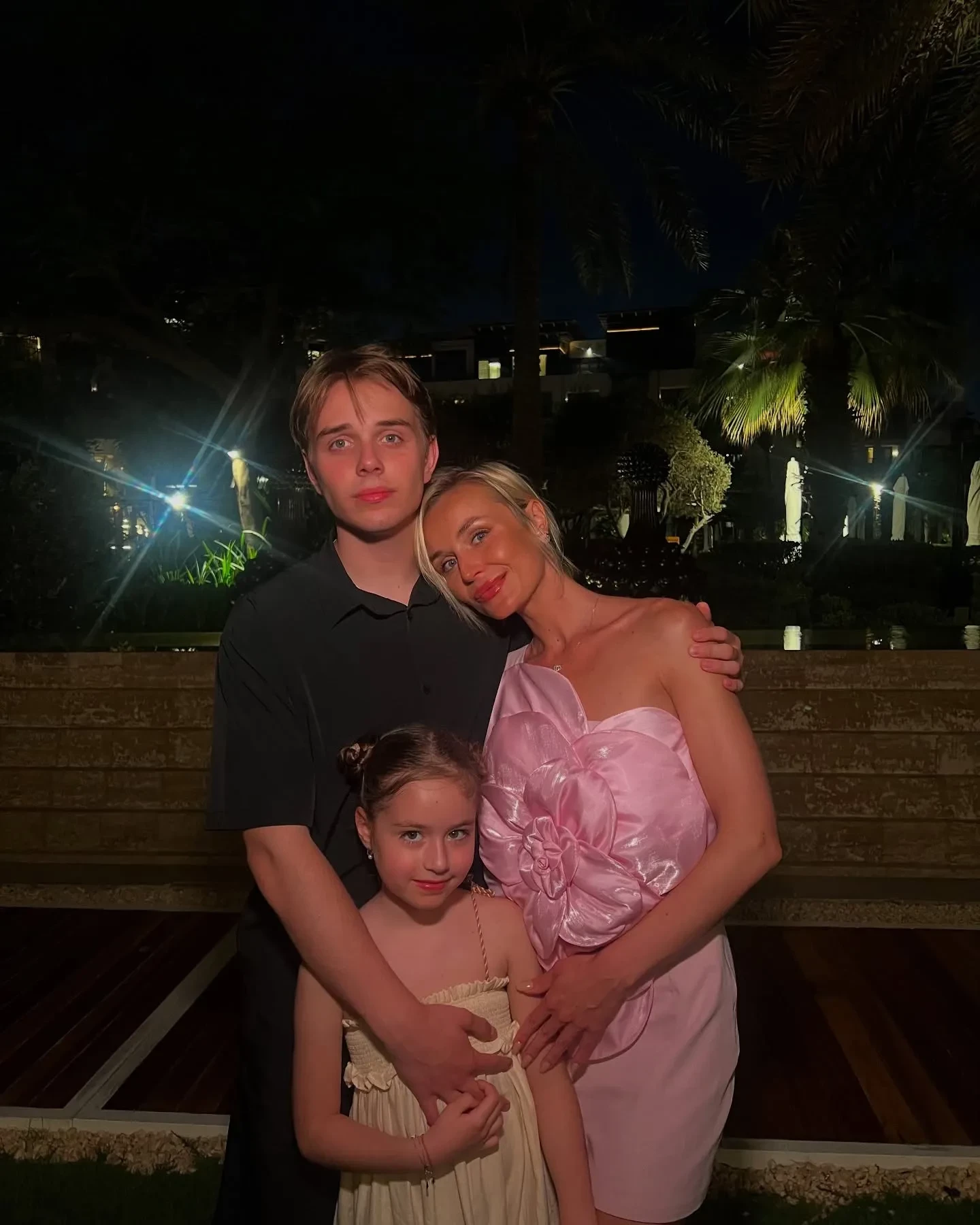 На одном из снимков 38-летняя Гагарина в розовом мини-платье запечатлена с 17-летним сыном Андреем от актёра Петра Кислова и с восьмилетней дочерью Мией от фотографа Дмитрия Исхакова.