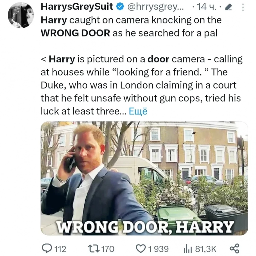 Как пишет The Sun, Гарри постучался в двери как минимум к трём незнакомцам, прежде чем отыскать дом своего друга. Британцы шутят, что принц, видимо, потерялся из-за отсутствия государственной охраны, которой можно доверить поиск нужного адреса. В России же сравнивают Гарри с Филиппом Киркоровым, который тоже однажды "зашел не в ту дверь".