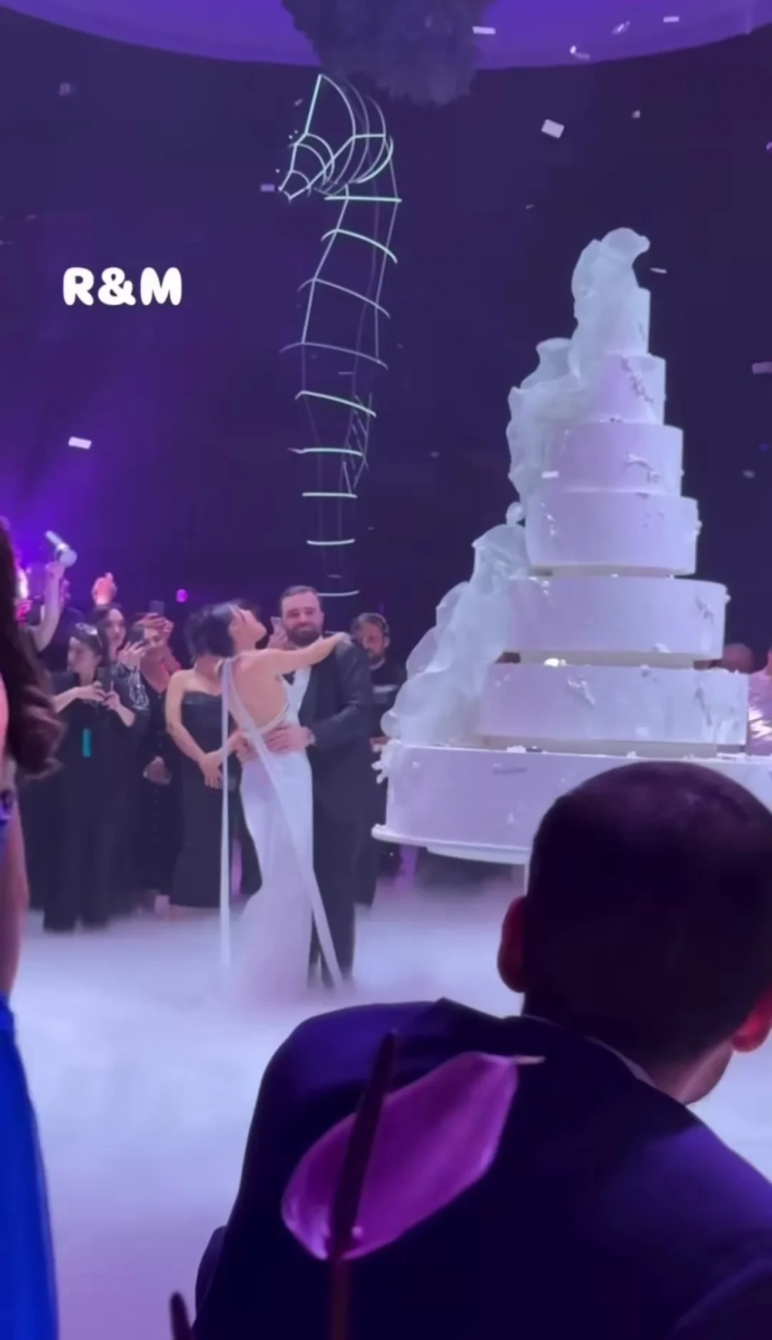 Для события молодожены зарезервировали главную концертную площадку Еревана — спортивный комплекс имени Карена Демирчяна. Там для гостей устроили представление с участием известных танцевальных и музыкальных коллективов. Свои хиты исполнили Валерий Меладзе и Тата Симонян, а ведущими вечера стали Гарик Мартиросян и Назени Оганесян.