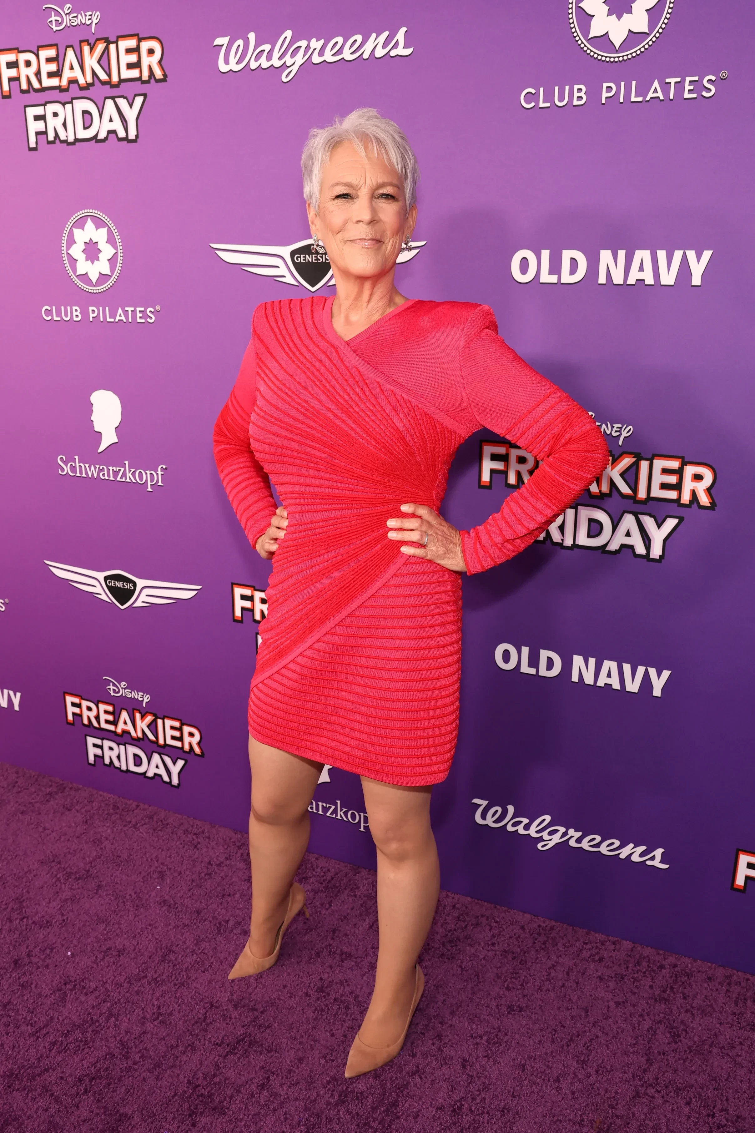В Лос-Анджелесе состоялась премьера сиквела культовой комедии "Чумовая пятница". На красную дорожку мероприятия вышли Линдси Лохан и 66-летняя Джейми Ли Кёртис (в красном мини), которые вновь вернулись к своим ролям спустя 22 года после выхода оригинальной ленты.
